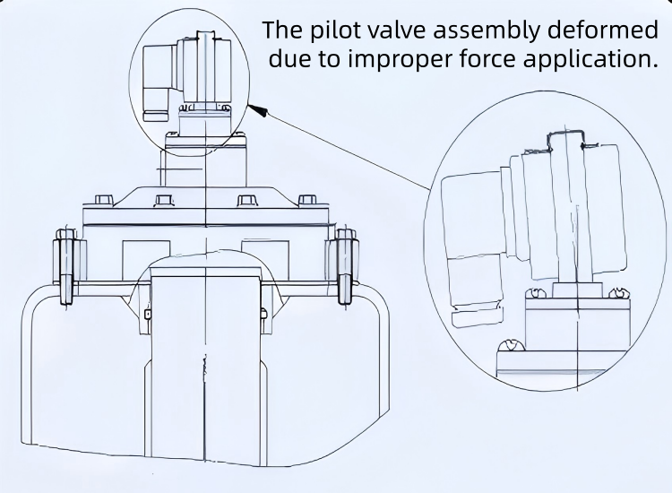 หลังการติดตั้ง ห้ามทำการเชื่อมถังลม หน้าแปลนที่เชื่อมต่อ หรือท่อเป่าเพื่อป้องกันการกระเด็นของการเชื่อมหรือความเสียหายต่อไดอะแฟรมที่อุณหภูมิสูง ใช้งานด้วยความระมัดระวังในระหว่างการขนส่งหรือการติดตั้งเพื่อป้องกันความเสียหายจากการกระแทกต่อชุดนำร่องของโซลินอยด์วาล์ว ซึ่งอาจทำให้ปลอกสปูลผิดรูป ทำให้ก้านที่เคลื่อนไหวติดขัดและป้องกันการทำงานของวาล์ว